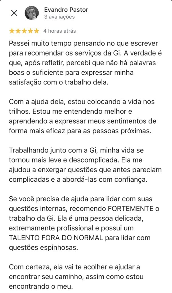 Também realizo atendimentos para estrangeiros, sempre adaptando a abordagem às necessidades culturais e ao contexto de cada pessoa.